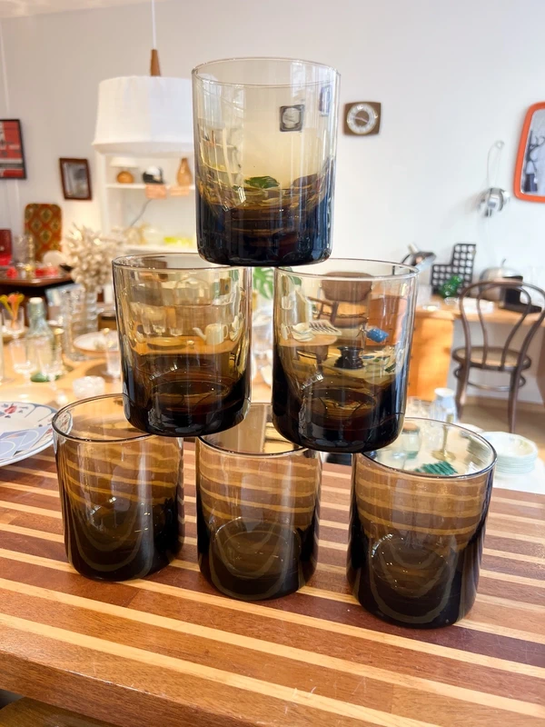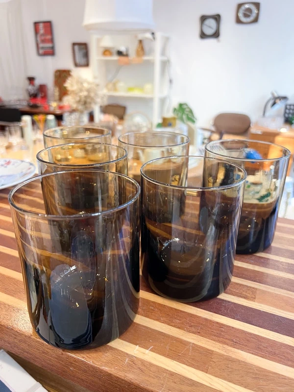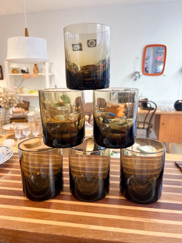 6 verres vintage en verre fumé