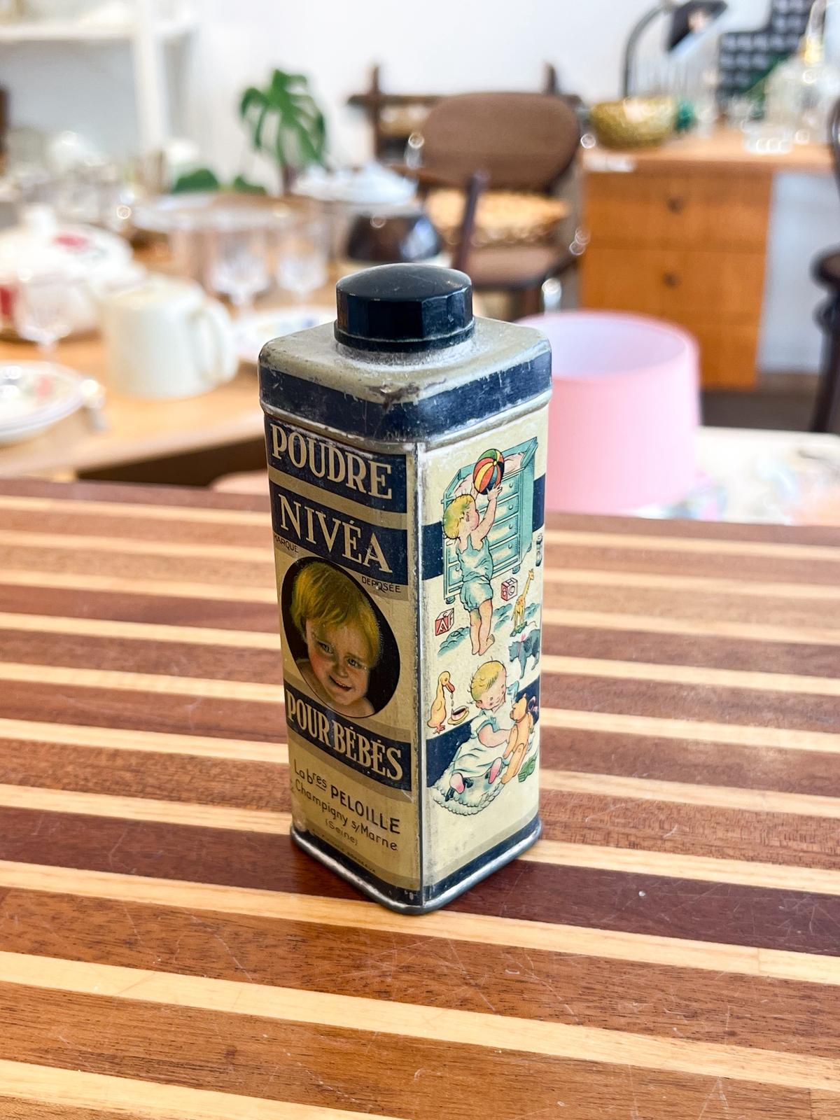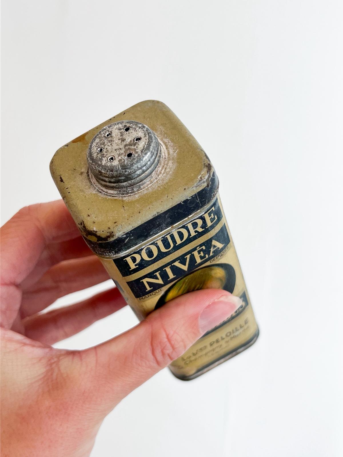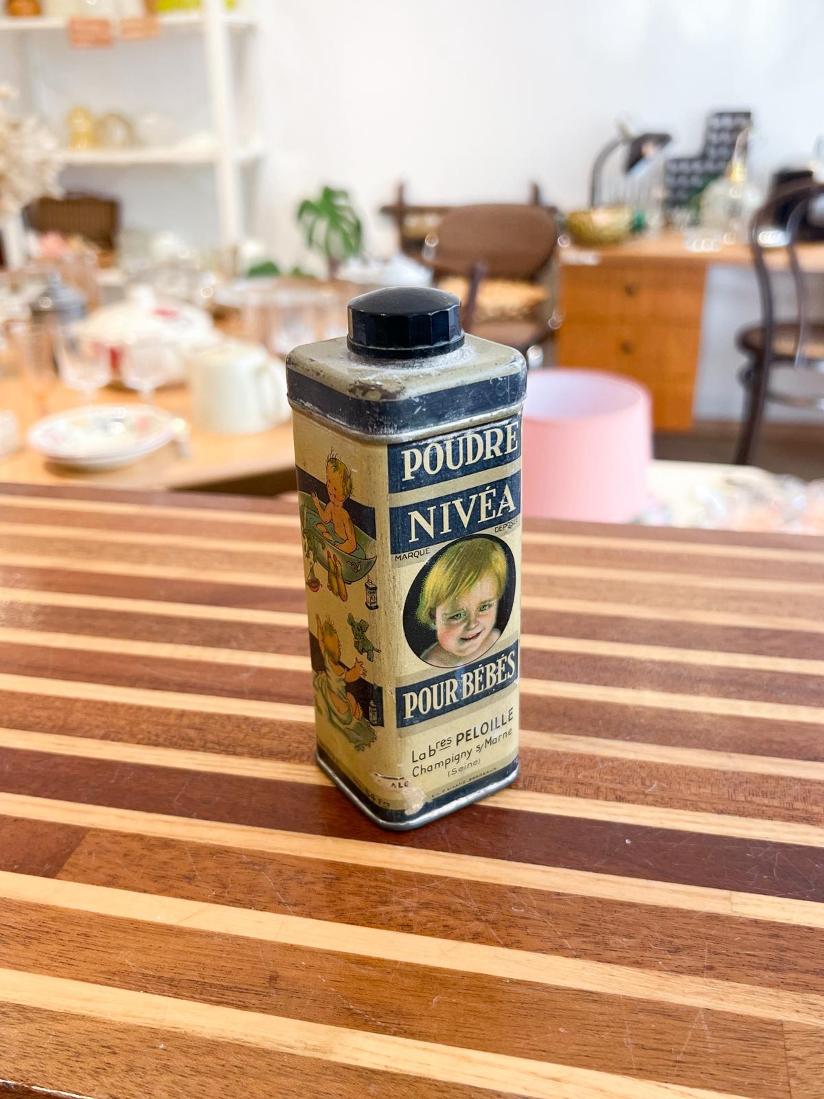 Ancienne boîte de talc Nivea – Années 50. Contient toujours du talc. Dans son jus.