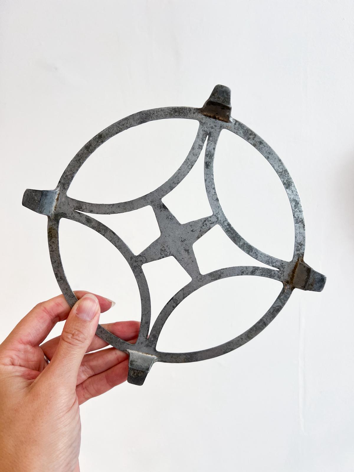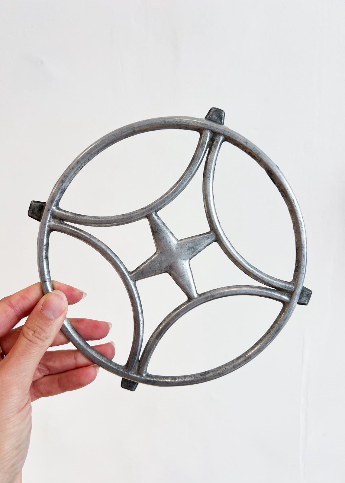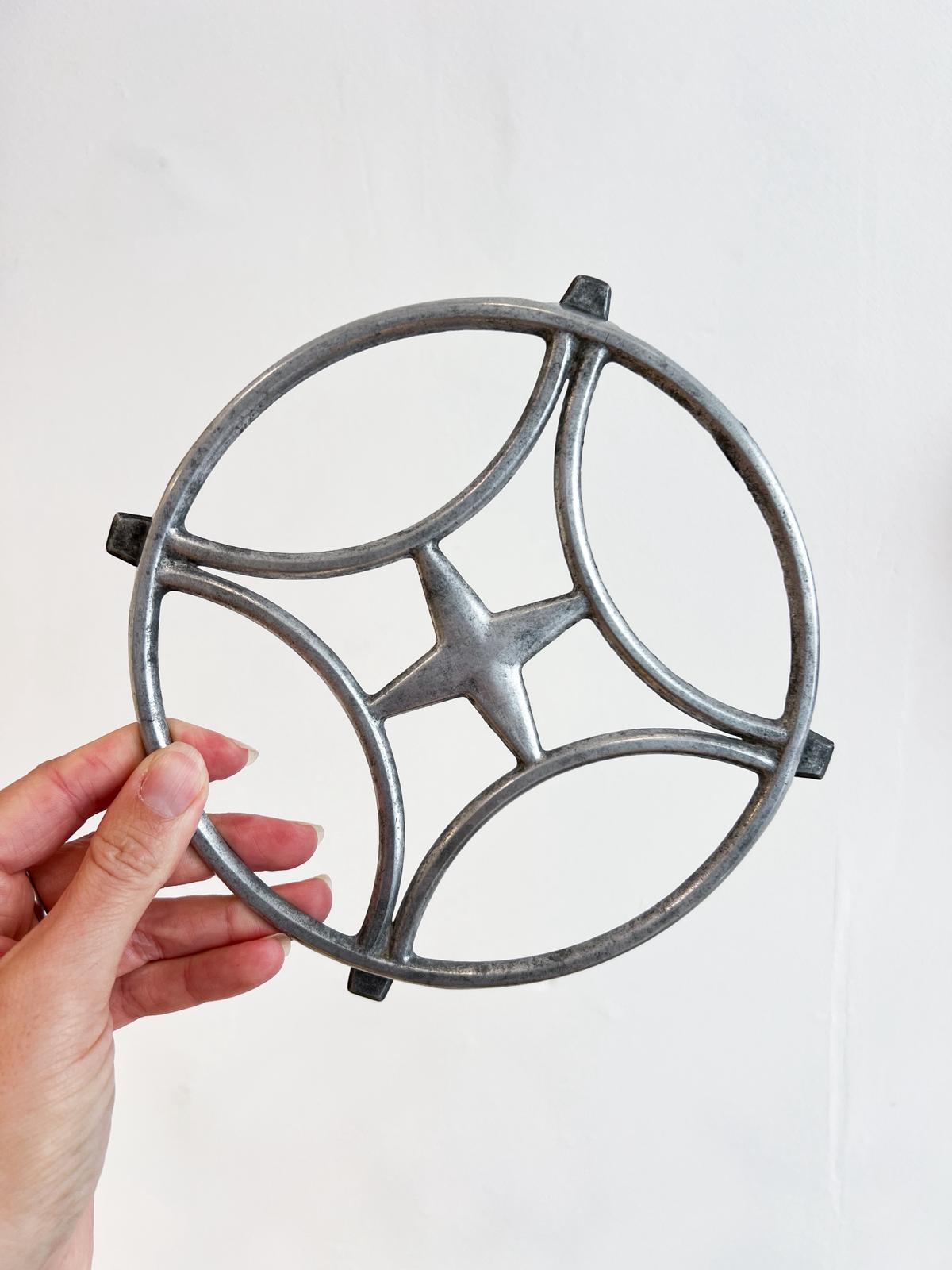 Dessous de plat vintage en aluminium – Très bon état. Diamètre : 17,5 cm