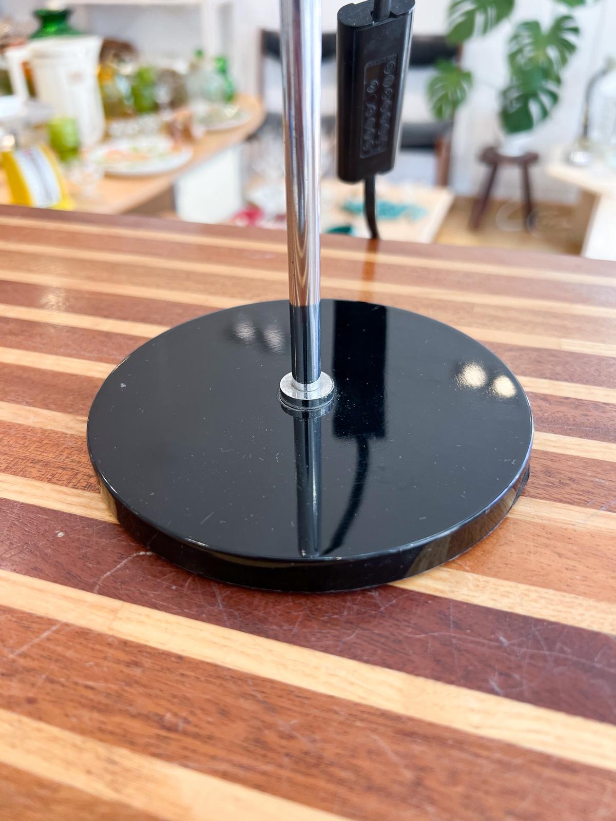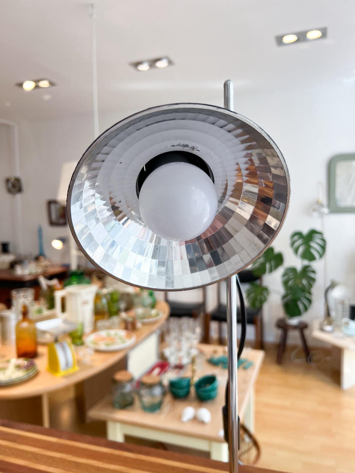 Très jolie lampe de bureau orientable. Années 70/80. Spot réglable en hauteur et orientable. Intérieur effet « boule à facette ». Ampoule e14 (non fournie). Légères marques du temps. Très bon état.