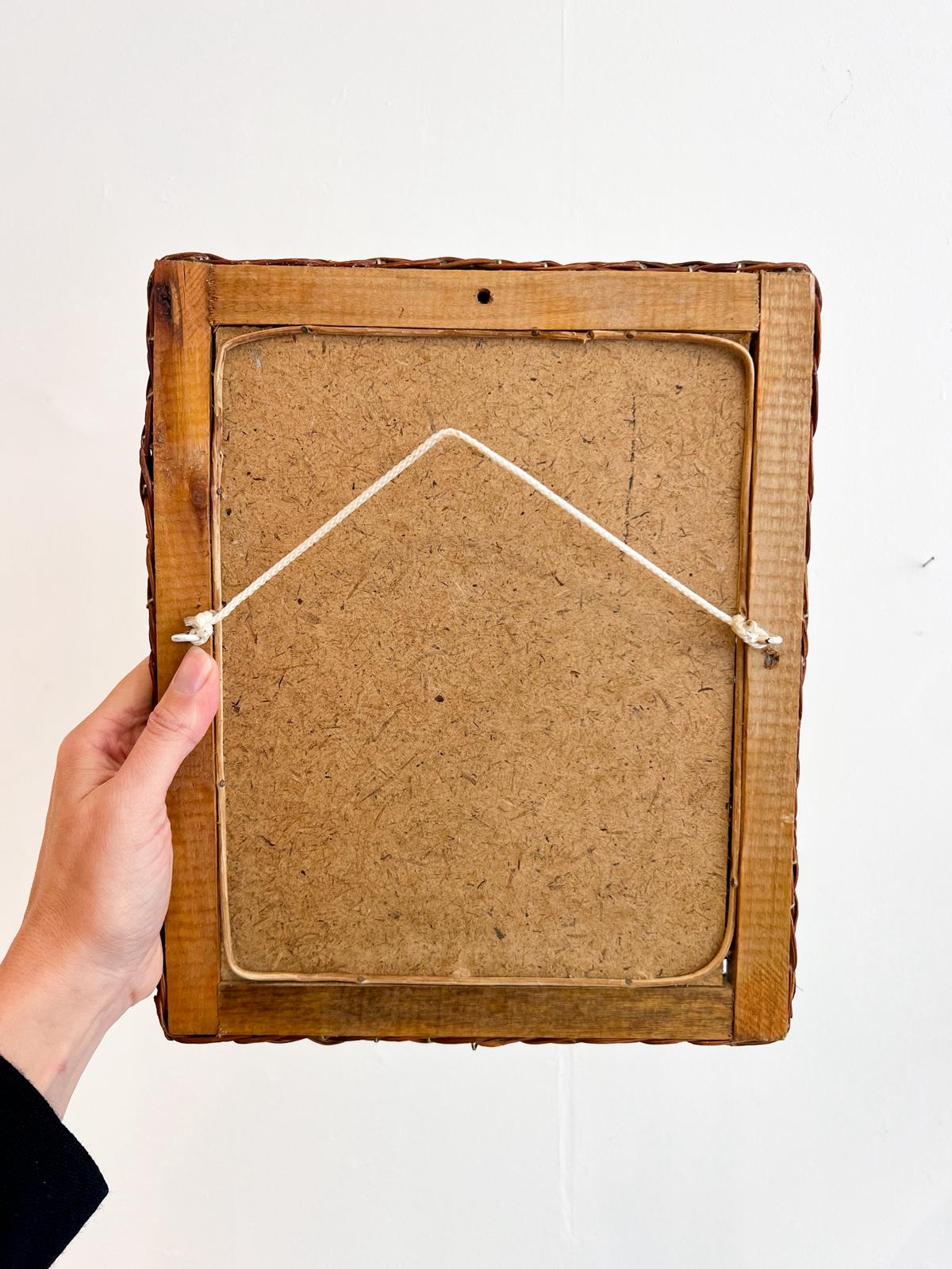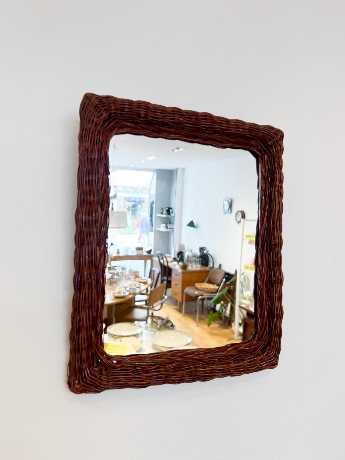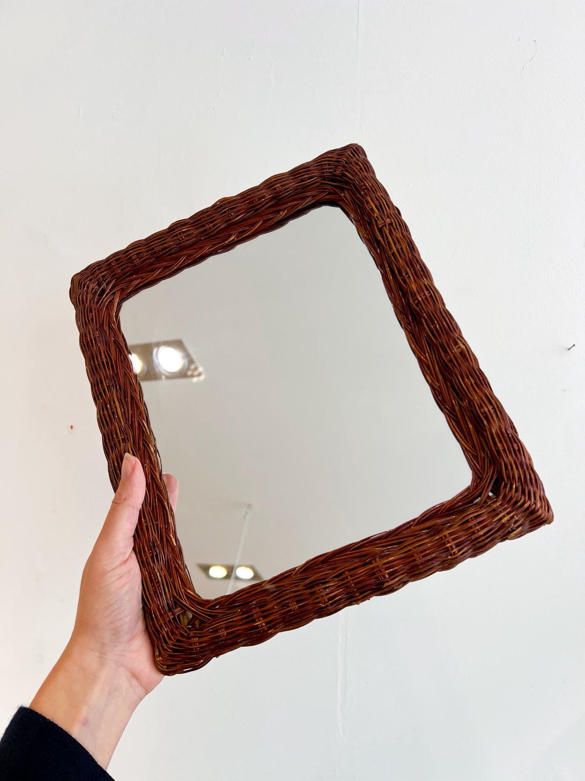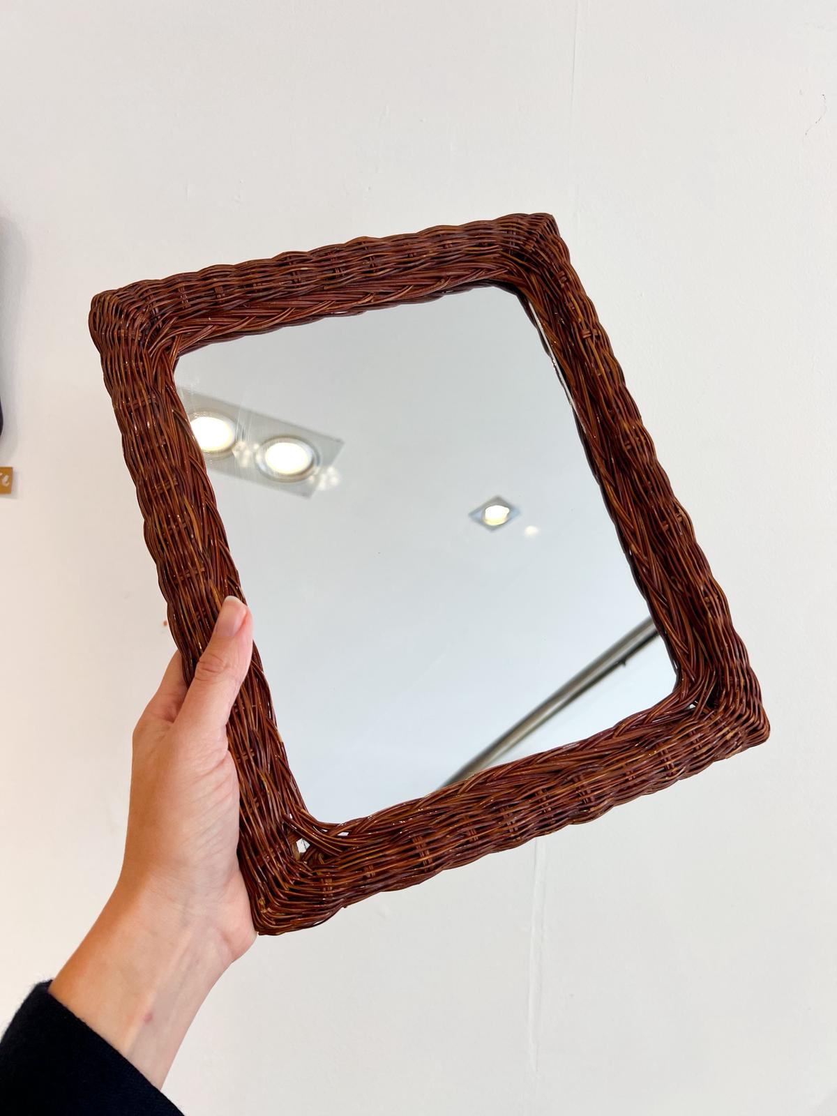 Adorable miroir vintage avec son cadre en osier – Très bon état.
