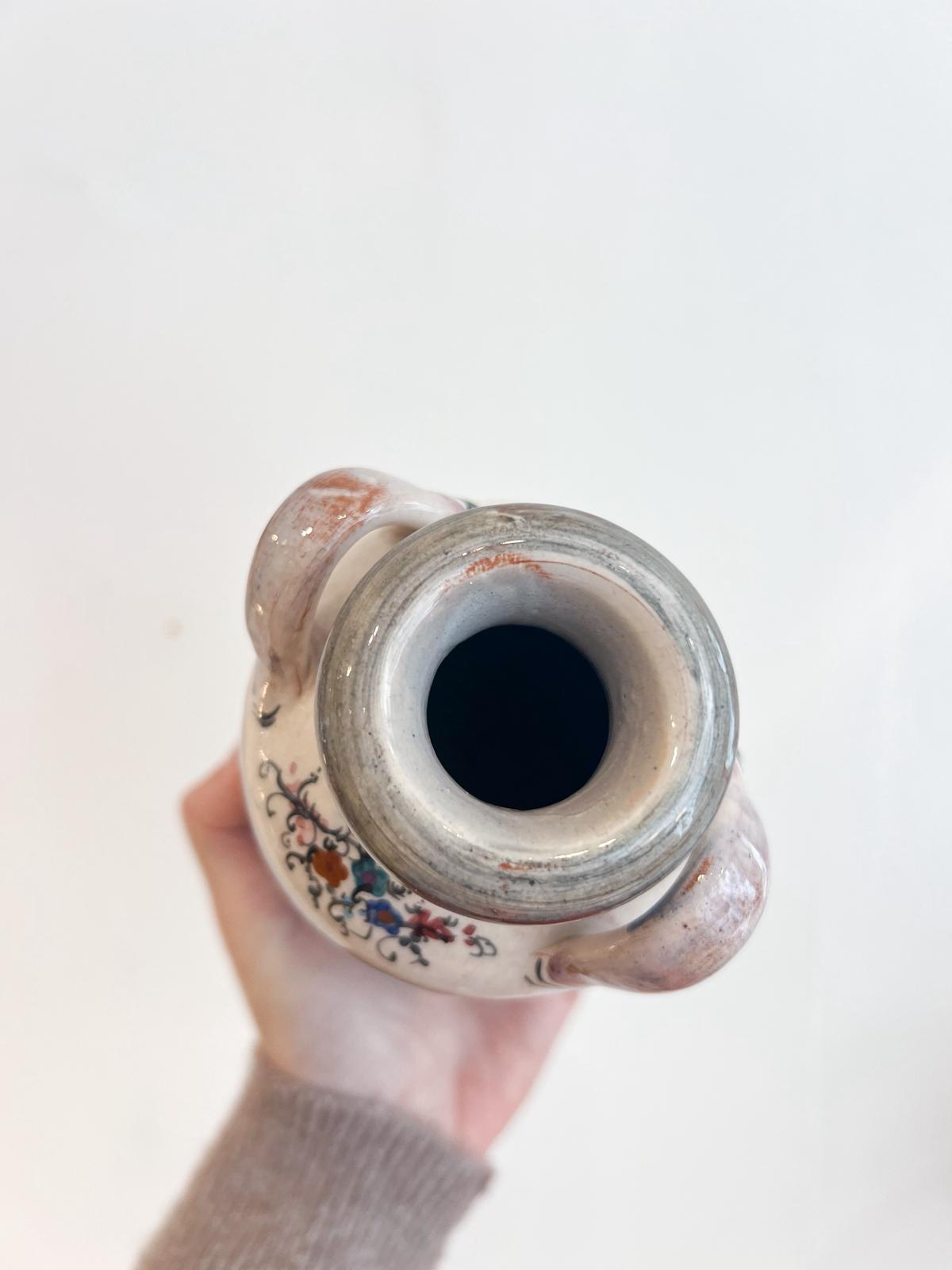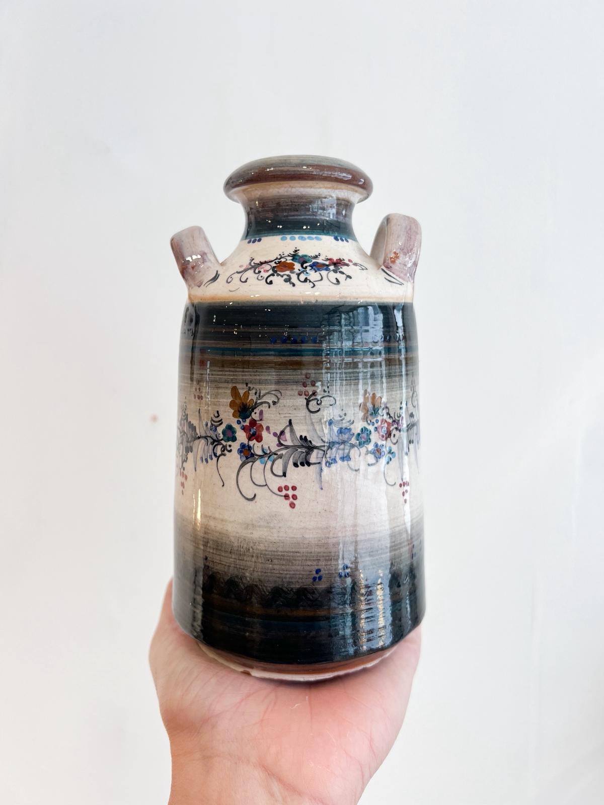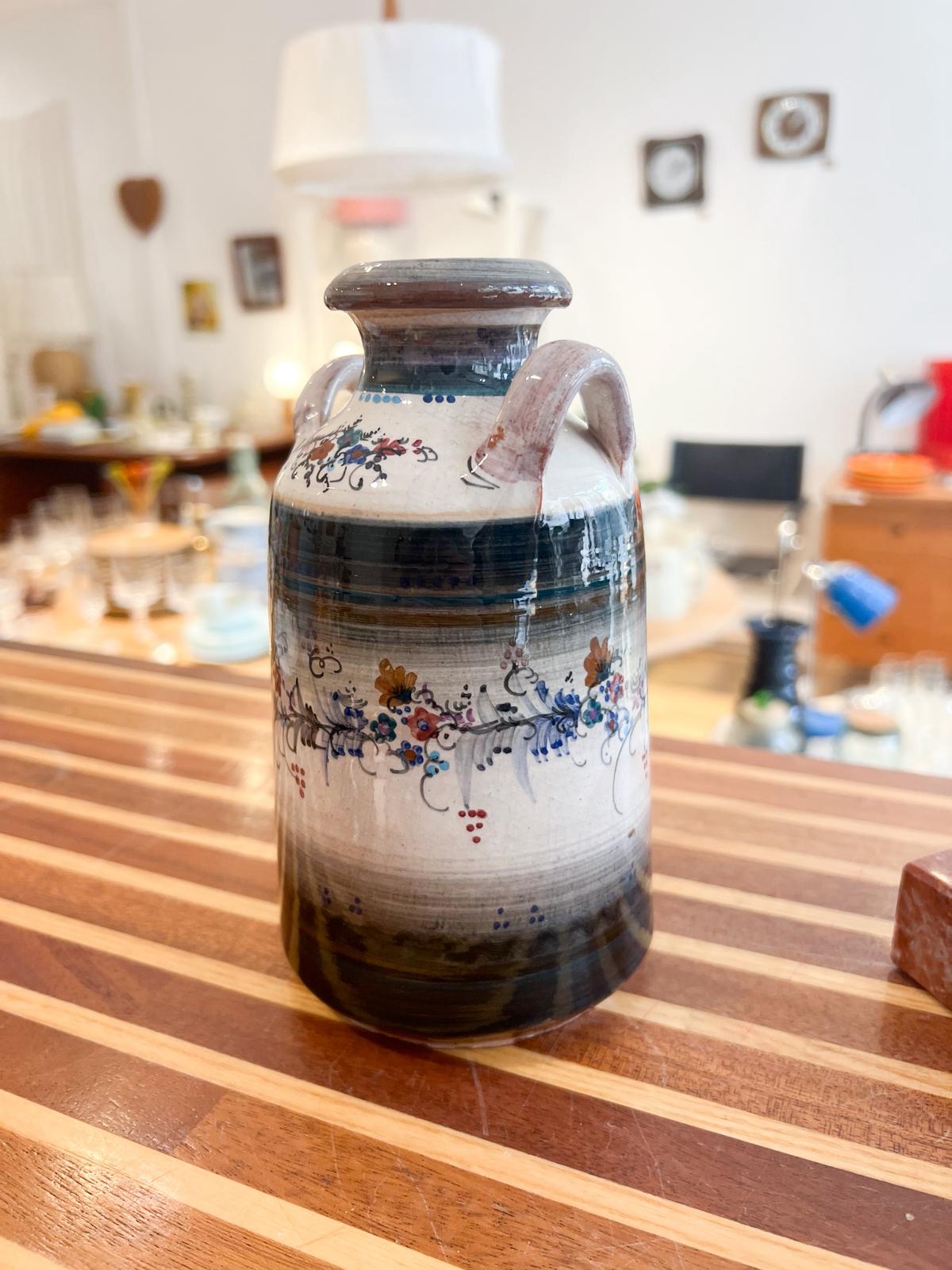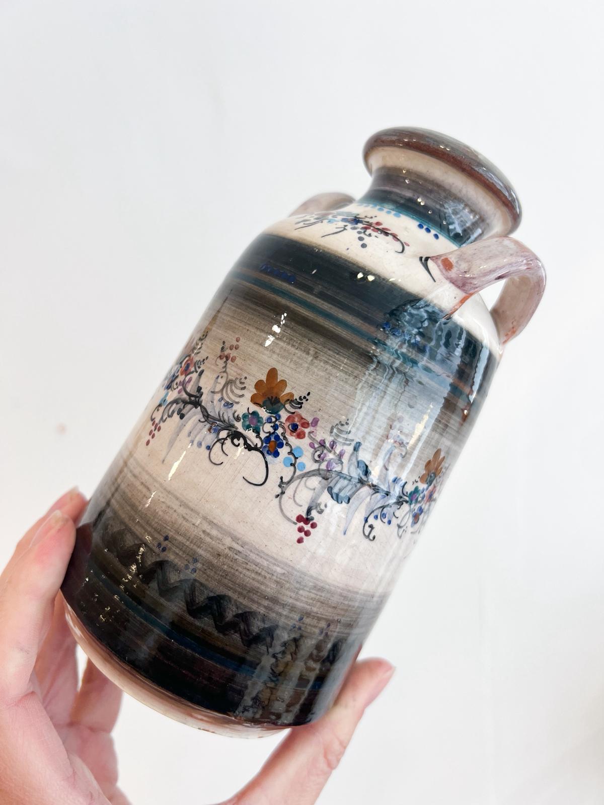 Très jolie poterie en terre cuite émaillée et décorée à la main. Signée. Très bon état.