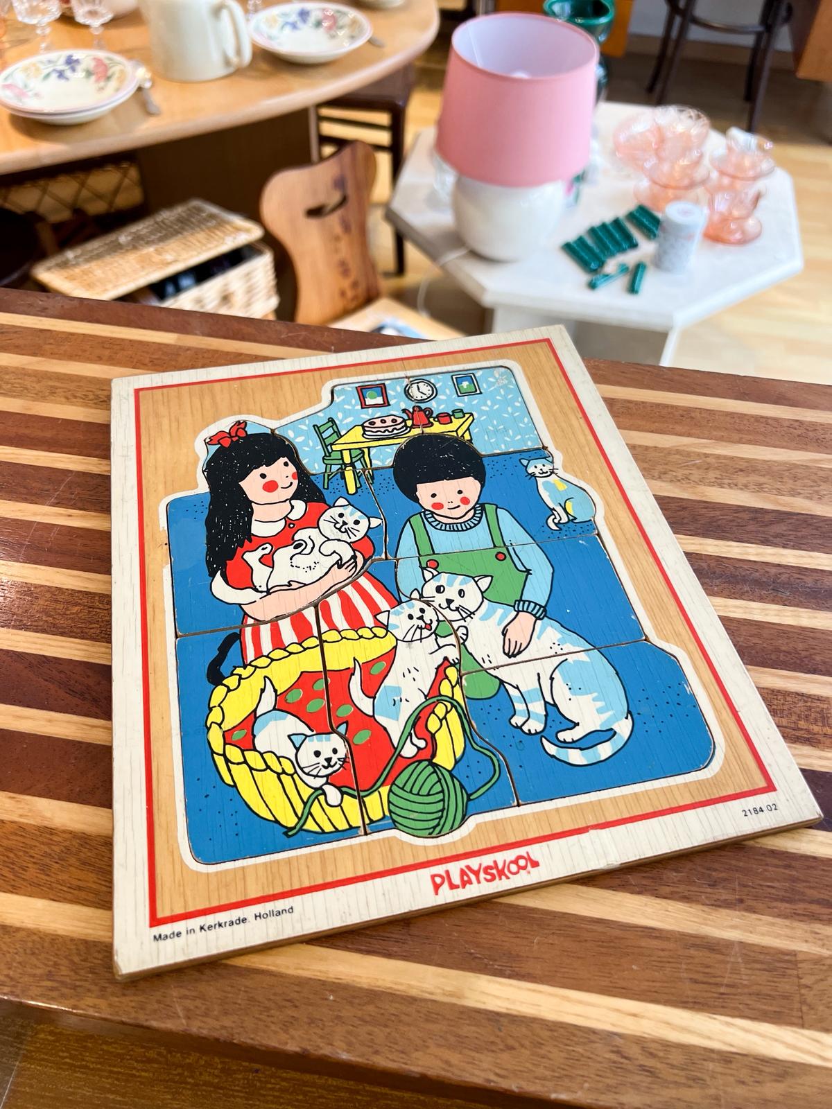 Puzzle en bois vintage – Marque Playskool – Made in Holland, années 80. Quelques traces d’usure. Bon état général.