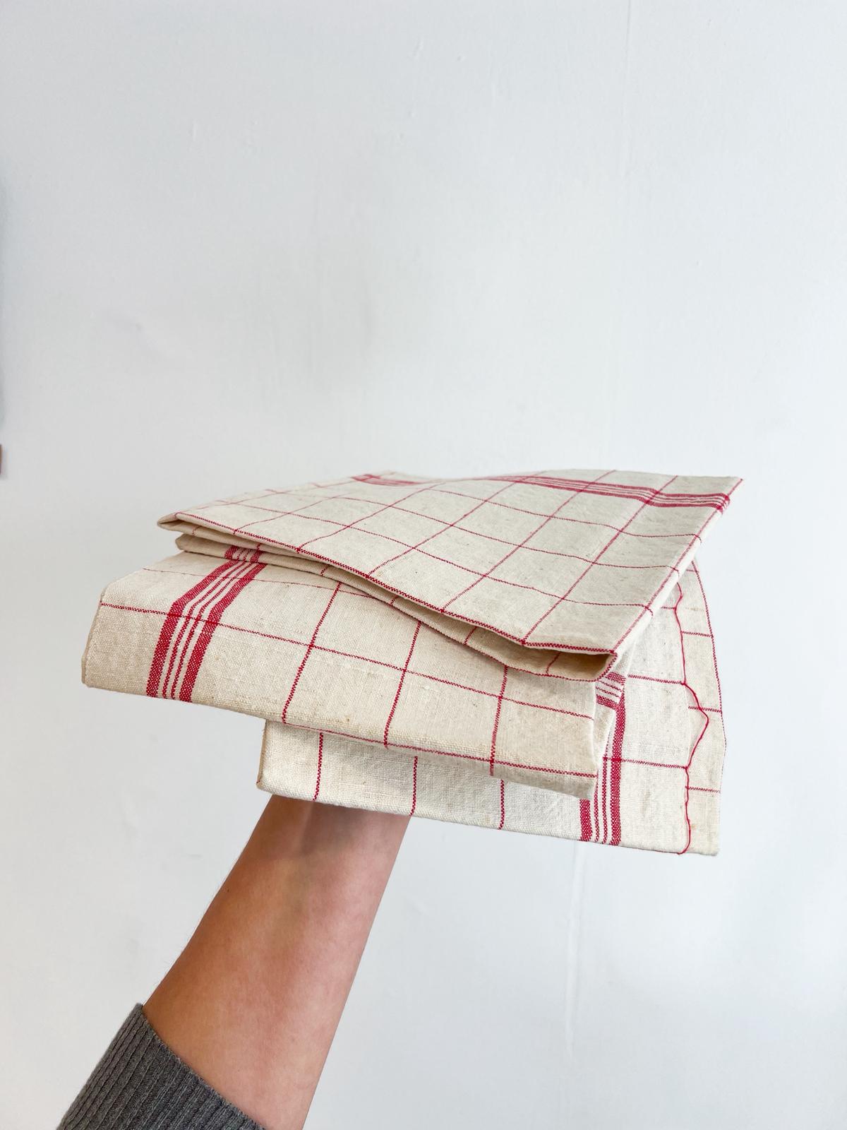Joli torchon ancien à carreaux en métis (mélange de lin et coton). Il est ancien mais n’a jamais servi. Super qualité. (3 unités sont disponibles, envoyez-moi un message si intéressé(e)).
