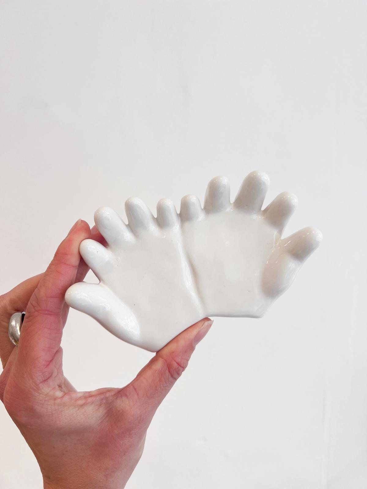Petit vide poche original en céramique. Forme de mains. Parfait pour déposer quelques bijoux.